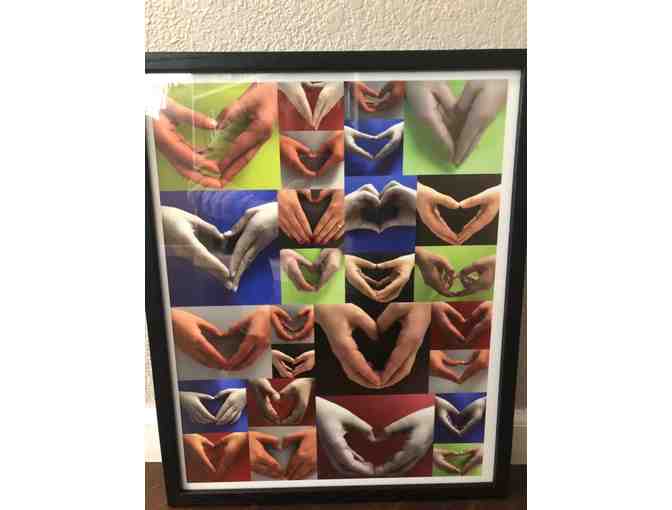 Miss Cary and her 25 students used their hearts to create this beautiful collage. The framed picture is 16"x20" and includes materials for hanging. Check out this masterpiece in Miss Cary's classroom window.