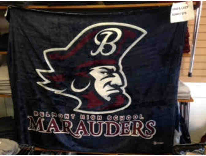 Belmont High School navy blue Marauders blanket, donated by Champions Sporting Goods