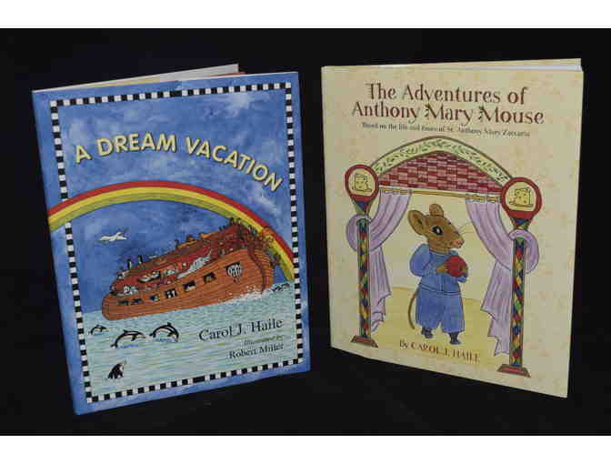 Author Carol Haile has signed these two special children's books. The first, "A Dream Vacation," colorfully illustrated by Robert Miller is about two pandas who take a long overdue vacation on Noah's Ark! The text and illustrations will be cherished by young and old readers. In "The Adventures of Anthony Mary Mouse," Carol Haile has told the story of St. Anthony Mary Zaccaria of Cremona, Italy in enchanting rhyming text, set in calligraphy and illustrated by the author. Anthony's life of service to the poor, and journey to sainthood, and Noah's ark are stories that will be requested at bedtime by youngsters and enjoyed by parents when read again and again. Hard-covered, these will last a lifetime.