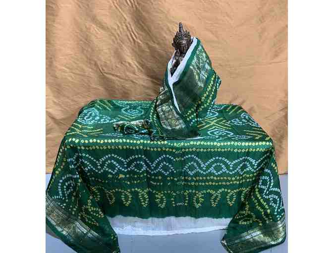 Altar Cloth from the Divine Mother's Sari - Green and White Silk