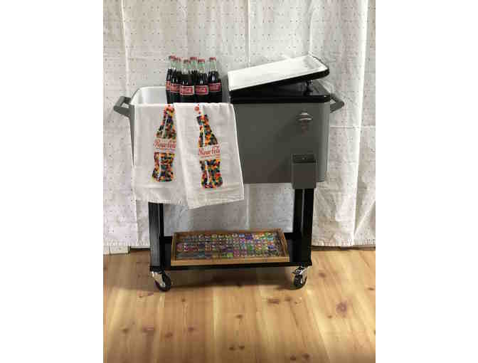 Start the summer parties off right with this cool beverage cooler that includes custom soda-themed bar towels and a serving tray created by Mrs. Rowe’s talented class. This sleek mobile party center goes from a daytime hang out for the kids to a nighttime bash for the adults. Guaranteed to be a stand-out in the crowd and a great reminder of your kiddo’s 2nd grade year.