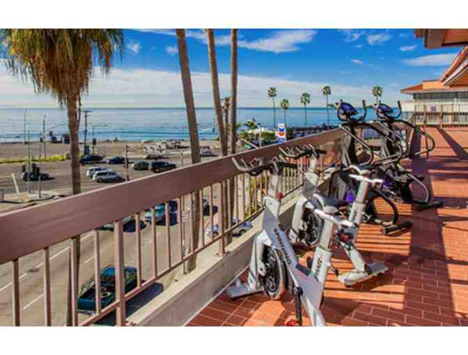 A group fitness dance class at Bay Club Pacific Palisades as well as and lunch served by Pure Energy Cafe.