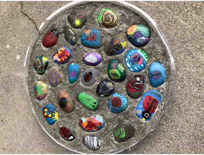 The B-4 birds have created a one of a kind garden stepping stone. Each student painted a rock with their favorite insect which we then set into a 17" diameter stone. This stone will add color and whimsy to your garden.