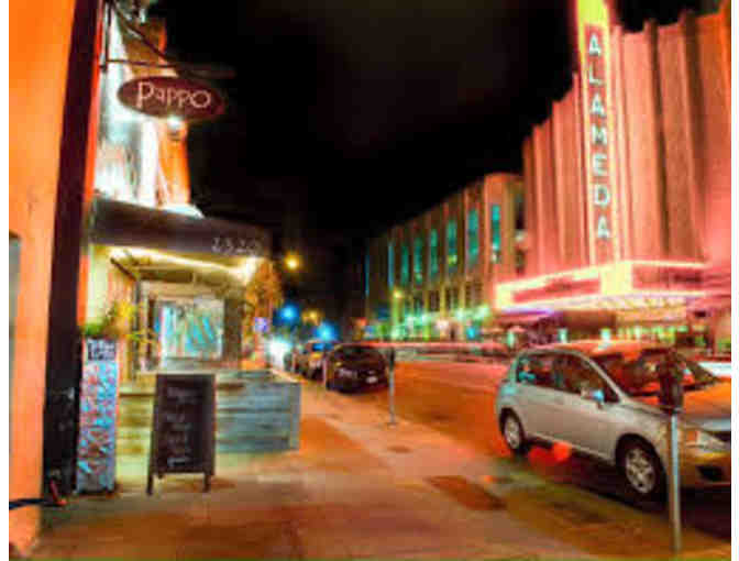 Enjoy an evening out on the town, including a $50 gift certificate for dinner at Pappo and two (2) tickets to the Alameda Theater. Three hours babysitting included where your children will also enjoy pizza and a movie (provided by the Bechtel Brooks family).