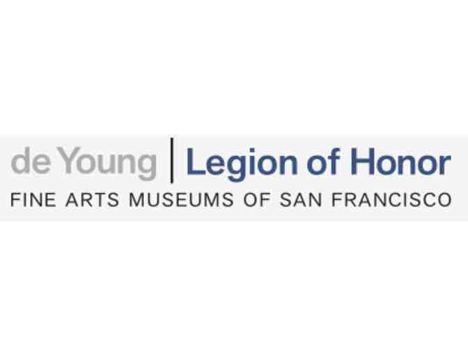 4 VIP general admission passes to the Fine Arts Museums of San Francisco - The Legion of Honor or the de Young. The Legion of Honor displays a collection of 4,000 years of ancient and European art in an exquisite Beaux-Arts building in an unforgettable setting overlooking the Golden Gate Bridge. The de Young's extensive collection is housed in a new building in Golden Gate Park.