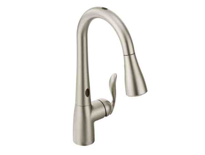 Looking for a great way to get a quick kitchen update? This is a beautiful Moen Arbor high arc pulldown kitchen faucet and it has the incredible Moen "MotionSense" technology! With this technology, you can turn on the water with just a wave of your hand!