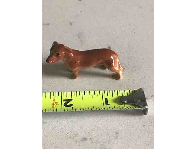 This Hagen Renaker Dachshund stands about 1" high, 2" long and 1/2" wide. It is a perfect representation in both color and body style of the classic Dachshund breed. Its dark brown color, long body, stalky chest, long nose and sweet eyes give this dog lots of character and charm.