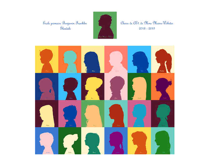 Framed class silhouette portrait featuring the studnets from French 2nd Grade