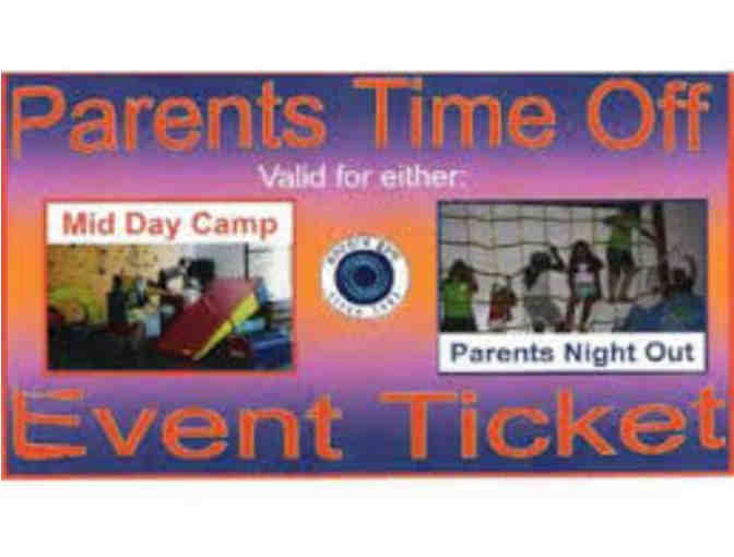 Check out this Parents' Time Off Event Ticket from Encore Gymnastics. It is valid for one 3 hour Mid-Day MiniCamp or one 3 hour Parents' Night Out for two kids at Encore. No cash value and cannot be transferred or exchanged. Good for single use only. Please call 925-932-1033 or visit encoregym.com for details, event times, or to sign up. Completed waiver forms must be presented with this voucher. Expires May 2020.
