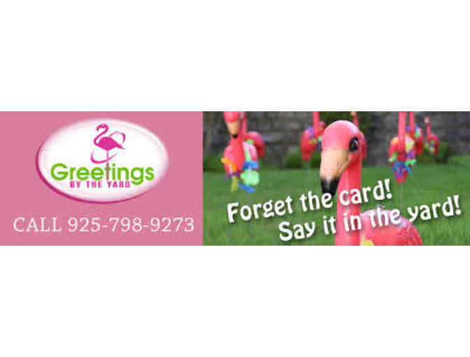 Forget the card! Say it in the yard! A special way to celebrate special occasions! Greetings by the Yard will set up an unforgetable display of your choice of ornament - flamingos, candles, cows, dinosaurs, smileys, hearts, teddy bears, graduation caps or graduation smileys - PLUS a personalized message. It's great for any special occasion: birthdays, anniversaries, graduation, new babies, showers and more.