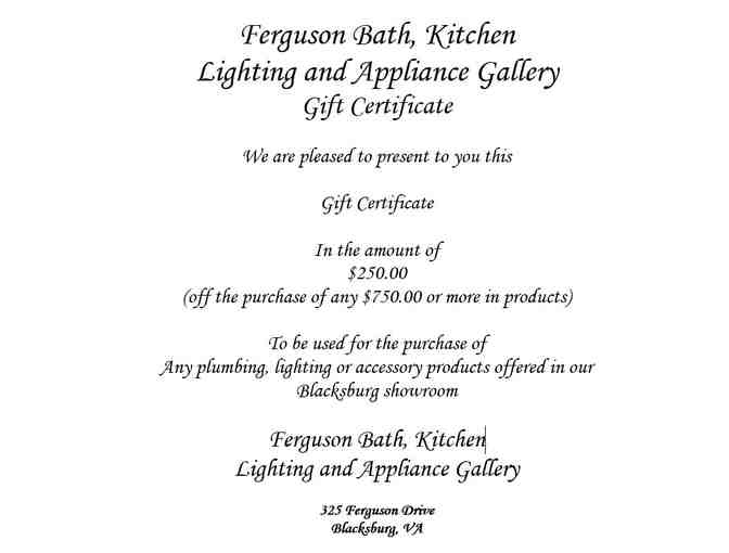 Does your home need an update? Head to the Ferguson showroom and check out their incredible selection of lighting, plumbing and more! This a $250 gift card for a discount off of a $750 purchase.