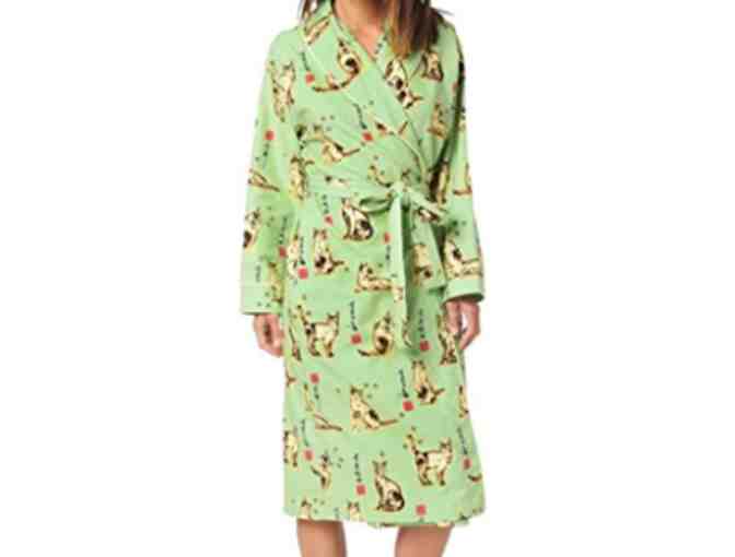 Flannel Robe -The Cat's Pajamas Mint Flannel Cat Print - Size M/L