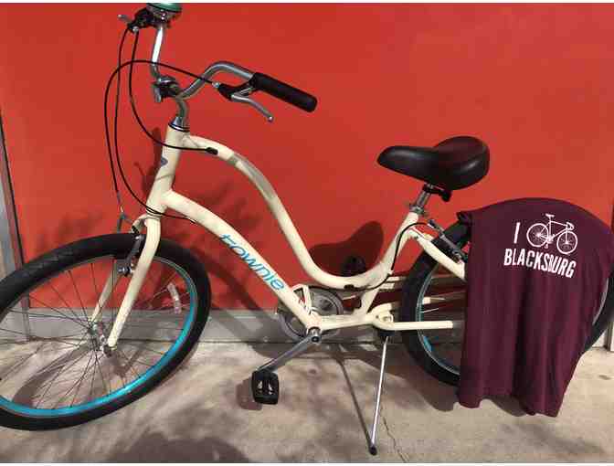 Check out this awesome cruiser! You'll look great on the Huckleberry on this Townie Original 7D Ladies' Cruiser in Cream. East Coasters has included the Bell Elextra Dreamtime Bike Bell and one of their signature t-shirts.