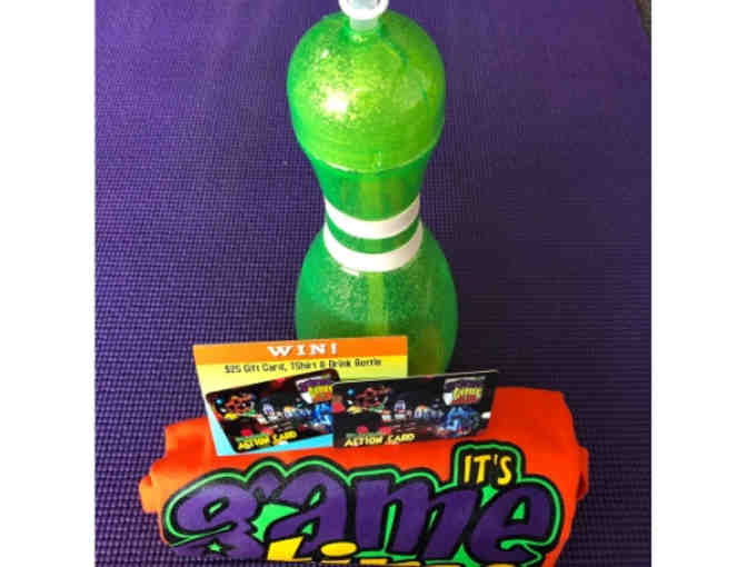 Head over to the NRV Super Bowl for a great outing, using this $25 gift card for any of their entertainment options. You also get this great bowling pin water bottle and Game Time t-shirt!