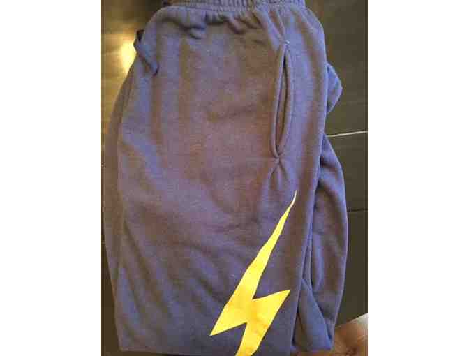 Aviator Nation's epic bolt printed on super comfortable sweatpants! Aviator Nation's single needle stitch work gives each garment a unique, one of a kind effect. All of their products go through an intense breaking-down process that gives them a vintage feel you'll love because it's broken in from day one of wearing it. You're going to live in these sweats.