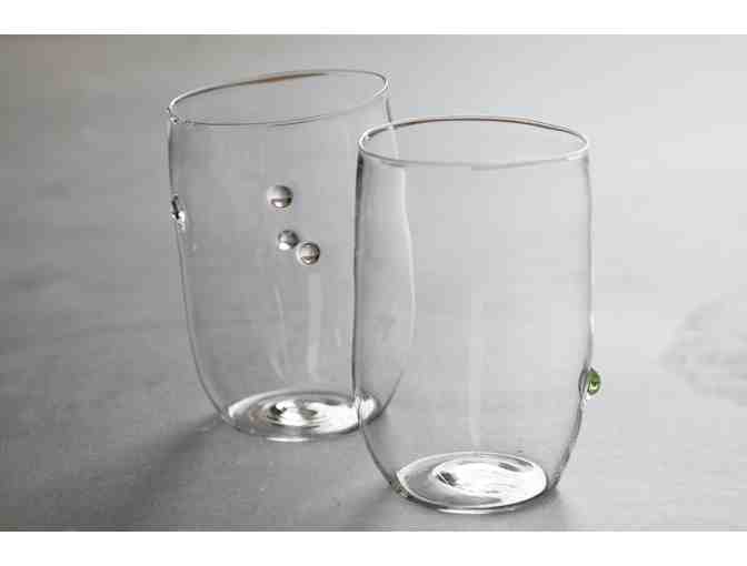 Set of four Malfatti Glass Medium Perlina glasses. These are handmade from borosilicate glass. Lightweight and durable, these 8 ounce glasses are dishwasher safe.