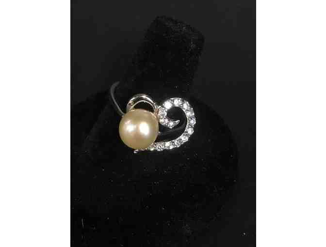 - Freshwater pearl and cubic zirconia sterling silver ring