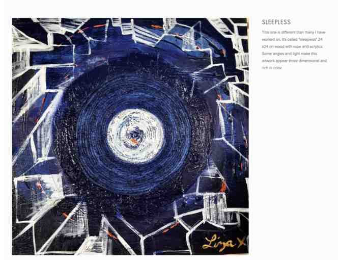 "Sleepless" is a 24x24 piece on wood with rope and acrylics.