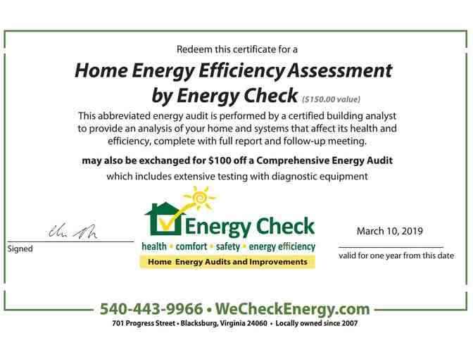 Are you sure your home is running as efficiently as it could? This abbreviated energy audit is performed by Energy Check, a certified building analyst, to privde an analysis of your home and systems that afect its health and efficiency, complete with full report and follow-up meeting. MAy also be exchanged for $100 off of a Comprehensive Energy Audit.