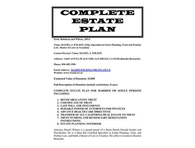 Attorney Daniel Wilson is a proud parent of a Stone Ranch Second Grader and Preschooler. He is a State Bar Certified Specialist in Estate Planning, Trust, and Probate Law, and holds a Master of Law in Taxation. His Office is conveniently located in Rancho Bernardo.