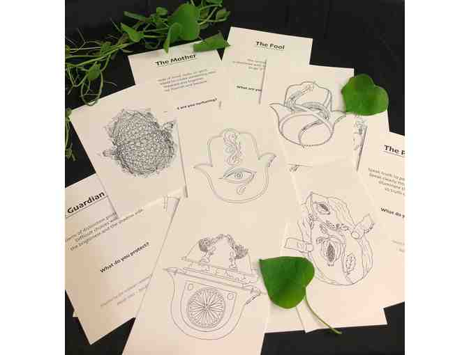 "Hamsas for the Divine Feminine” is a series of 13 illustrations inspired by the Kohenet Hebrew Priestess Institute. Each illustration is an offering to one of many pathways that offer us a deeper connection with different aspects of the divine feminine. The pathways, also know are archtypes are; The Weaver, The Wise Woman, The Fool, The Shrinekeeper, The Mother, The Prophetess, The Shamaness, The Seeker, The Mourning Woman, The Midwife, The Maiden, The Lover, The Guardian Queen