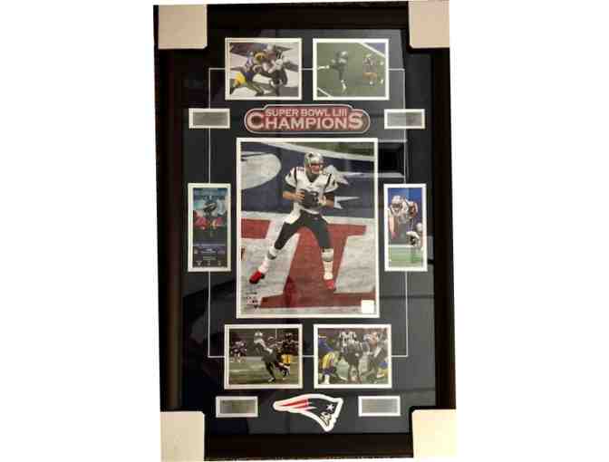 New England Patriots: Super Bowl LIII "Champions" beautifully framed photo collage with plaques. 35"H x 22.5"W.