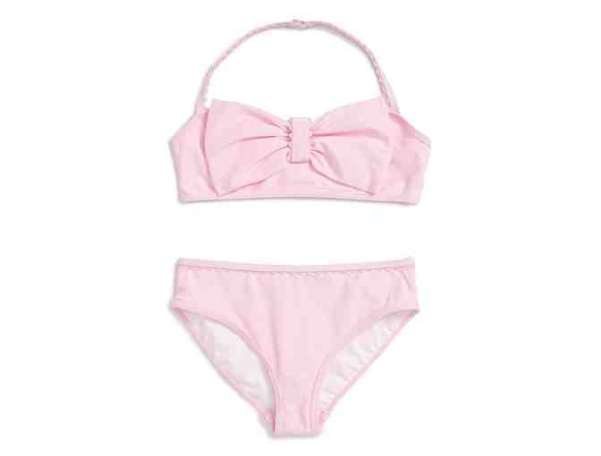 Kids Pink Two-Piece Bathing Suit. Bow halter top. Size 12Y.