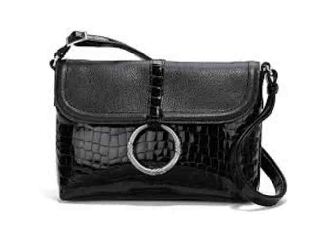 A bold hoop makes a style statement on this bag that mixes buttery soft leather with high gloss croco embossing. Great for day or night, with an adjustable strap and cell friendly pocket on back.