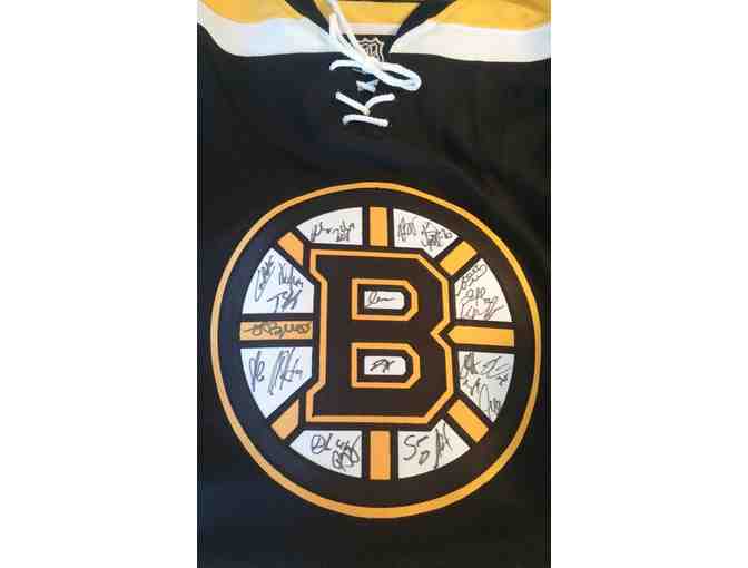 Boston Bruins Team Signed Jersey. Jersey is an officially licensed NHL jersey, size 52. This highly collectible, hard-to-get Bruins memorabilia is perfect for any hockey fan.