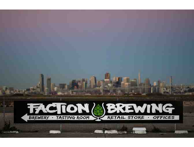 Enjoy a beer tasting for 4 people at Faction Brewing, located on the previous Alameda Naval Base with sweeping views of the San Francisco skyline and Bay Bridge.