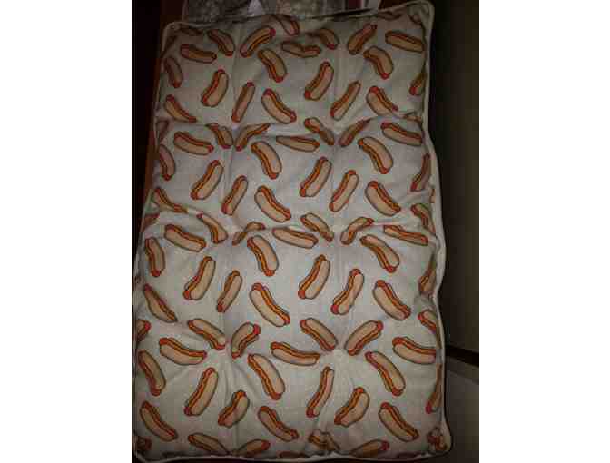 Wow, a dog bed with attitude. Your "hot dog" will love this comfy bed to lounge on and soak up the sun. measures 28" x 18"