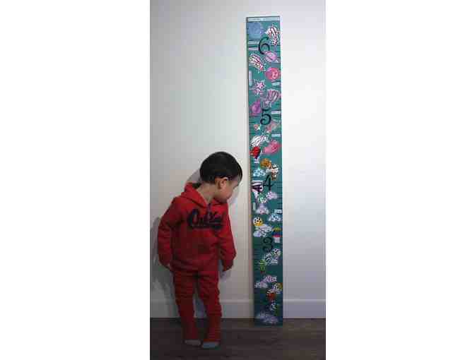 The children in the Robins class had so much fun creating this growth chart together. The images were created by layering and stamping, the children experimented with different paint techniques and materials like bubble painting, blowing acrylic paint with straws, cellophane collage, gem stones, metallic paint and Modge Podge. A beautiful and artistic way to track their magical growth!