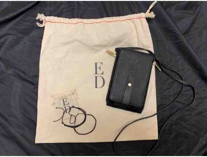 The perfect bag for travling and touring, this crossbody satchel with velvet detailing from the Ellen DeGeneres line features an asymetrical inside pocket, making all your cards and money easily accessible but safe from falling out when opened. Two matching string bracelets complete the look. Includes large dustbag for satchel and small dustbag for bracelets.