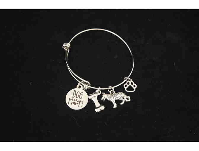 So Charming for the Shepherd Lover! This stylish, expandable charm bangle bracelet is for the German Shepherd “Dog Mom.” Made of U.S. manufactured stainless steel, this piece includes 3 stainless steel (U.S. manufactured) charms and 1 silver-plated charm. The size of each of the following charms is between 1/2"-3/4":