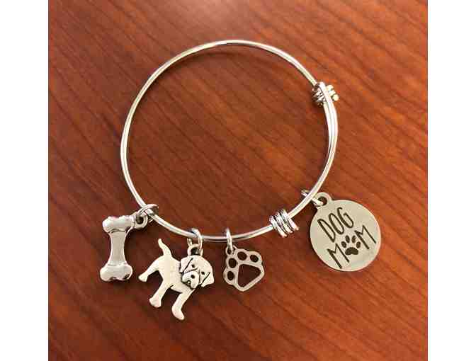 This bracelet will "charm" any lab lover! This stylish expandable charm bangle bracelet is for the Labrador retriever “Dog Mom”. Made of U.S. manufactured stainless steel, this piece includes four stainless steel charms (size of charms are between 1/2”- 3/4”):