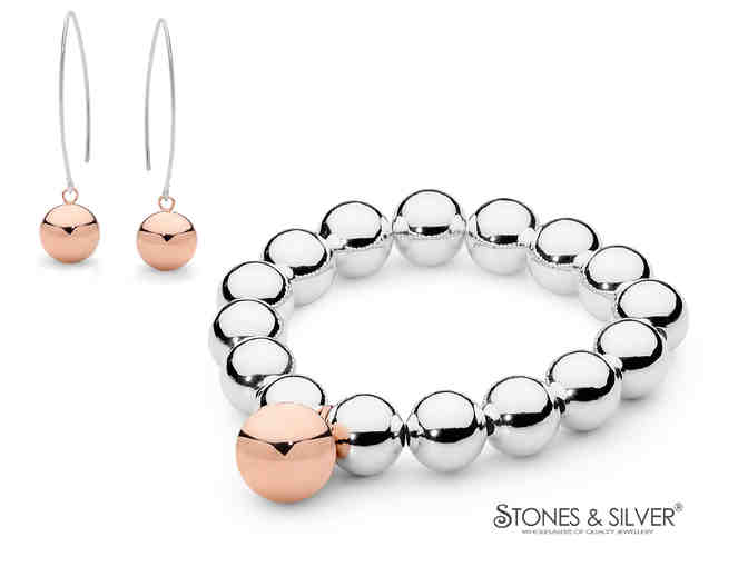 SILVER AND ROSE GOLD BALL BRACLET & EARRINGS