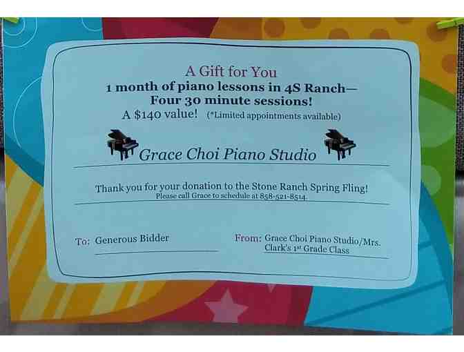 Grace Choi Piano Studio is a 4S Ranch family-based business. Learn a new skill and have fun with these four (4) music lessons!