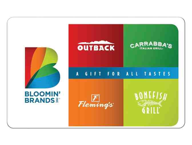 A gift card from Bloomin' Brands, Inc., is perfect for any special occasion. Whether it’s a birthday, anniversary, or a thank you, treat your family, friends and business associates to an incredible dining experience! This Gift Card can be used at Outback Steakhouse, Carrabba's Italian Grill, Bonefish Grill and Fleming's Prime Steakhouse.