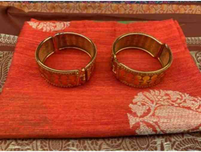 These very lovely and precious bracelets were worn by the Divine Mother in the Crestone temple for several years. Bracelets are a little bit more than 1 inch wide and open and close for easy wear. Bracelets come wrapped in a piece of the Divine Mother's sari that measures 15 x 5 inches.
