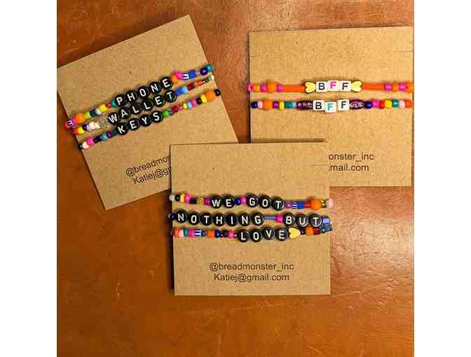 Bread Monster makes handmade friendship and string bracelets for kids and adults. The winner can select their own personal saying and style. =