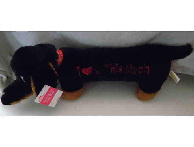 "I Love U this much" Stuffed Black and Tan Dachshund