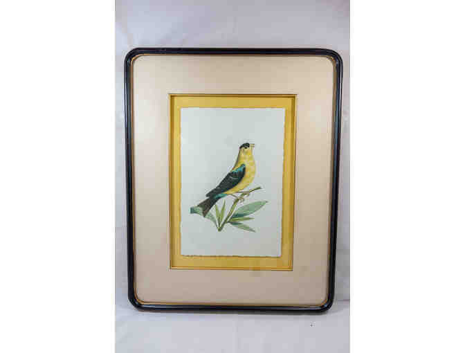 These 2 framed and matted bird prints by John-Richard will brighten your home!  The American Finch is a lovely yellow crested bird with grey wings.  The Blue Titmouse has a blue crown on its head with a cream belly and blue accents on the wings and back.