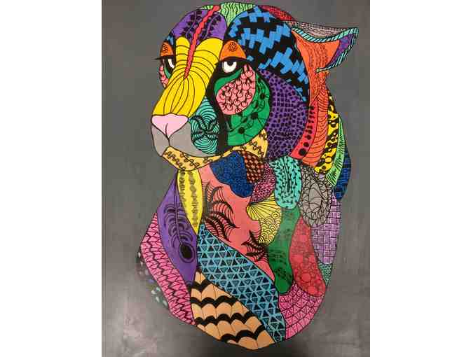 Bid on this colorful and creative artwork by 5th grade. It is a wild cat made with