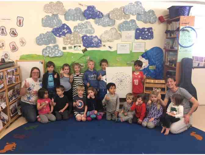 The Lemuren preschool class created a fingerprint dandelion that will delight everyone who walks into your home and sees it hanging on the wall. Thumbprint signatures are included on the back. :-)