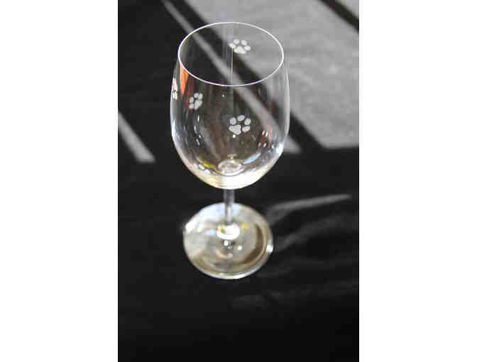Each 350 ml goblet sits on a 3" stem and is carefully etched with small paw prints in a scattered design, making this set both cute and classy.