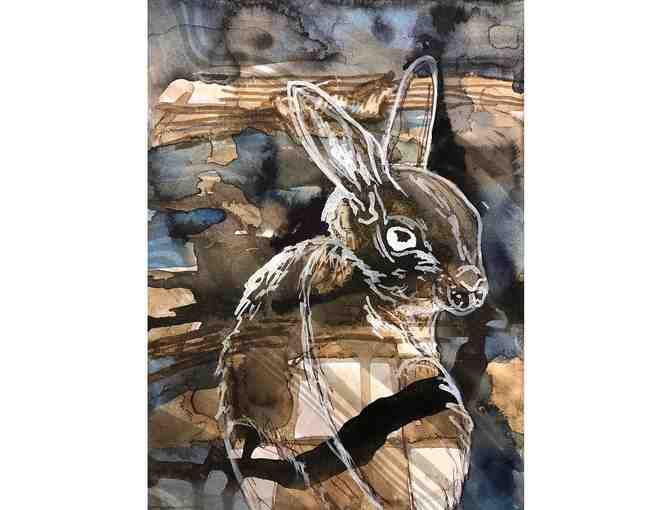 "Lil Seventeen", 2018, in ink and watercolor on hand-marbled paper. 6 x 8 inches in size.
