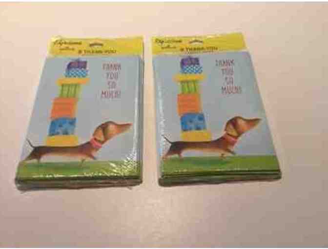 Your Mom taught you to always send a thank you card. Now you can do it in Doxie style! 2 pkgs of 8 note cards from Hallmark. Blank inside.