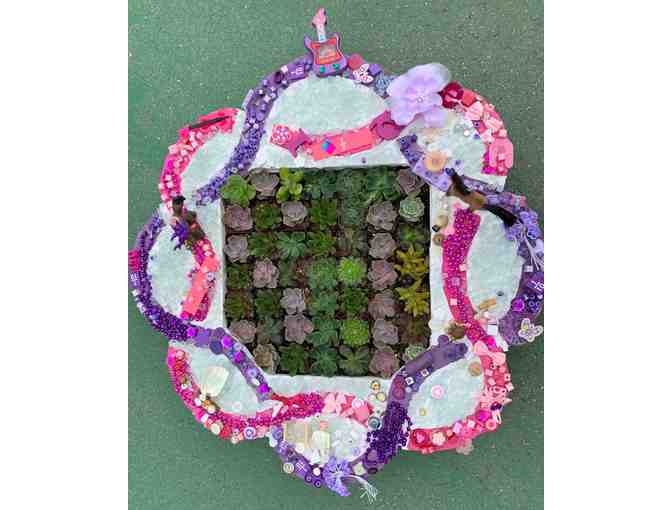 Clase Chambi has created a framed succulent display incorporating mosaic tiles.