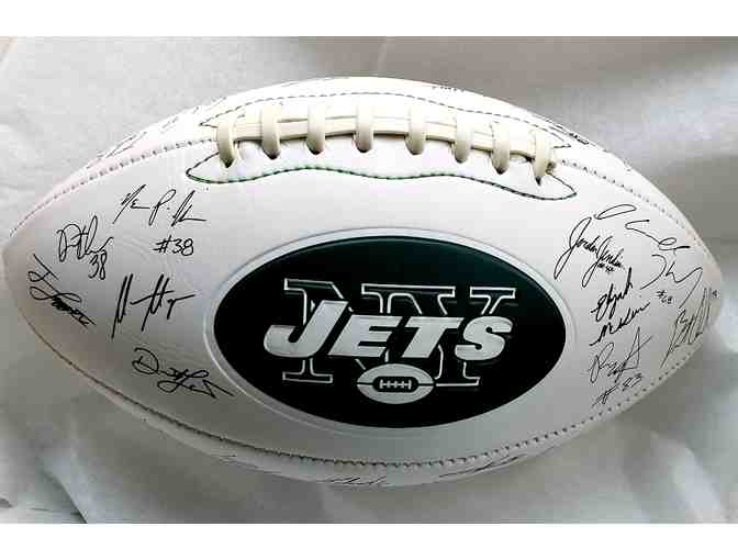 Presented by the New York Jets, a collectible football with the 2018 team's signatures reproduced by laser facsimile. Limited edition and not sold in stores.