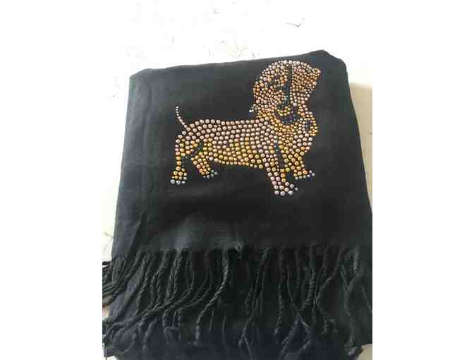 Black with Gold Bead Embroidered Lightweight Scarf